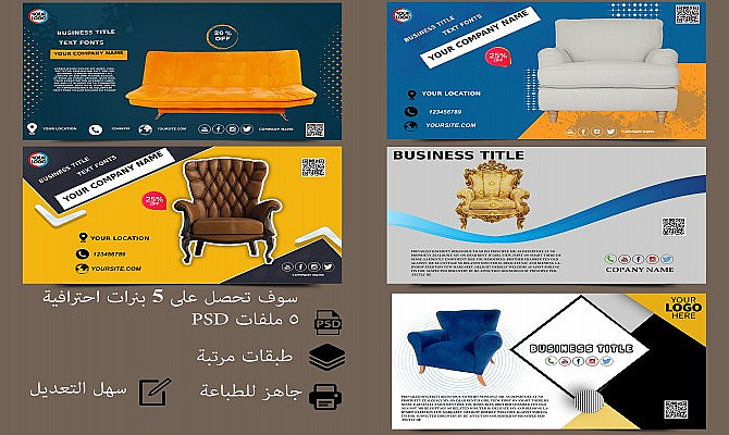 سوف تحصل على بنرات احترافية عالية الجودة بمقاسات متعدده