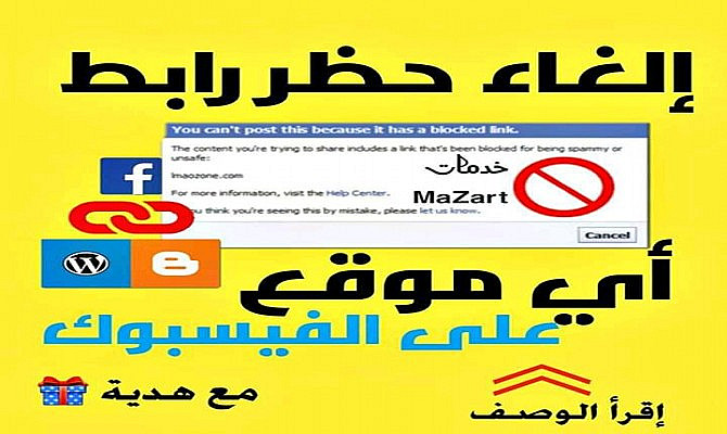 إلغاء حظر رابط الموقع على الفيسبوك