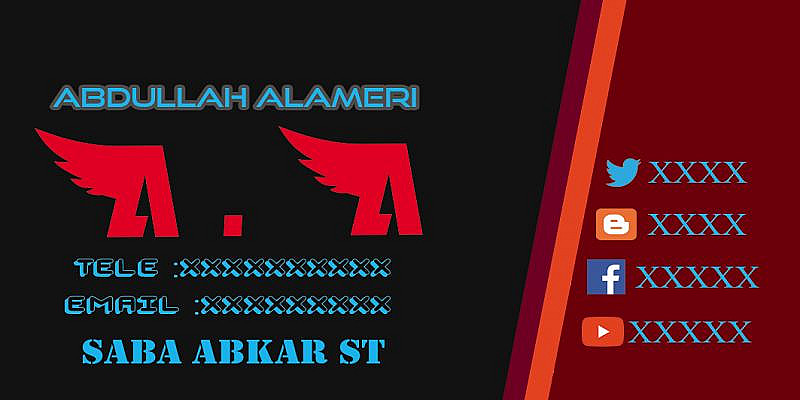 سارسل لك صورة بصيغة JPEG و ملف بصيغة PSD يمكنك ( التعديل عليهه في برنامج الفوتوشوب ) مثل رقم الهاتف و البريد الالكتروني او اضافة مواقع التواصل الاجتماعي الخاصة بك .