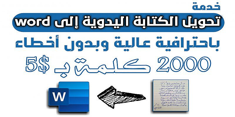 في هذه الخدمة سأحول لك أوراقك المكتوبة بخط اليد إلى ملف word أو pdf بدقة عالية وبدون أخطاء لغوية وبتنسيق رائع بإذن الله، (الخدمة تشمل اللغة العربية فقط).