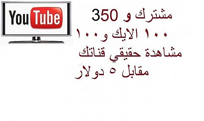 ساقوم باضافة 350 مشترك على قناتك و 100 الايك و 100 مشاهدة في اليوتيوب و يمكنك وباضافة و هدا دون حاجة الى اي معلومة خاصة عن القناة فقط بستخدام رابط الخاص بها حيث ستقوم بارسال لنا رابط قناتك في اليوتيوب و في اقل من يوم قناتك كل هدا مقابل 5$ فقط ...