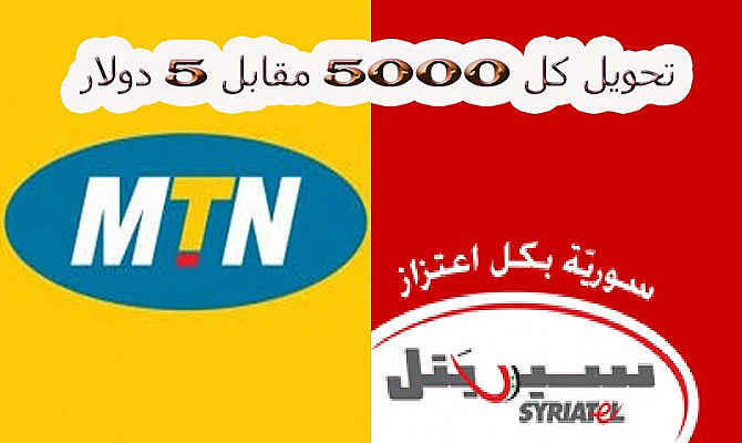سأقوم بتحويل رصيد mtn و syriatel كل 5000 مقابل 5 دولار الى من تحب بسرعة وامان