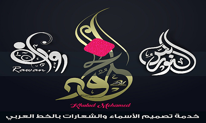 خدمة تصميم الأسماء والمخطوطات والشعارات بالخط العربي وباشكال عديدة وبجوده عالية جدا