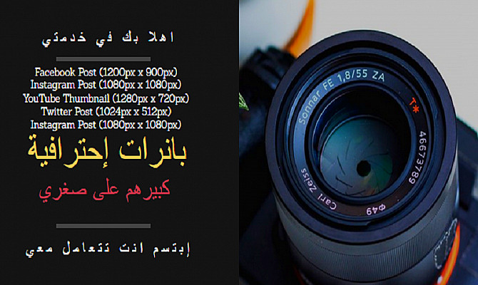 أقوم بصنع بانرات إحترافية ، وكذلك صور البروفايل وصورة البوستات والحالات لجميع مواقع التواصل الإجتماعي