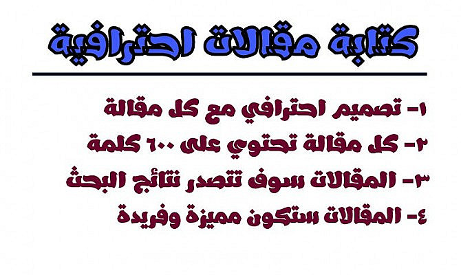 - كتابة عدد 1 مقالة 600 كلمة مقابل 5 $ فقط.