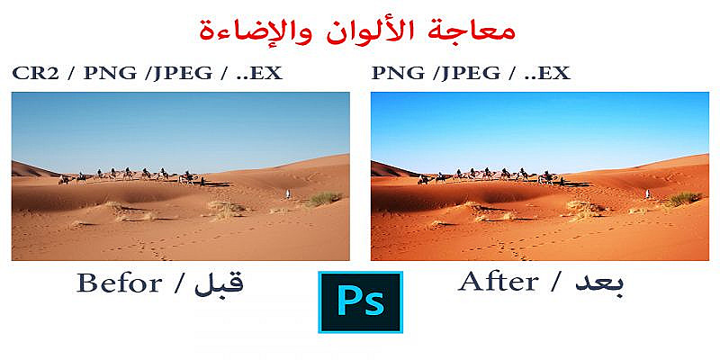 سأقوم بمعاجة ألوان وإضاءة الضور على برنامج فوتوشوب ,لجميع صيغ الملفات CR2 / JPEG / PNG / ...