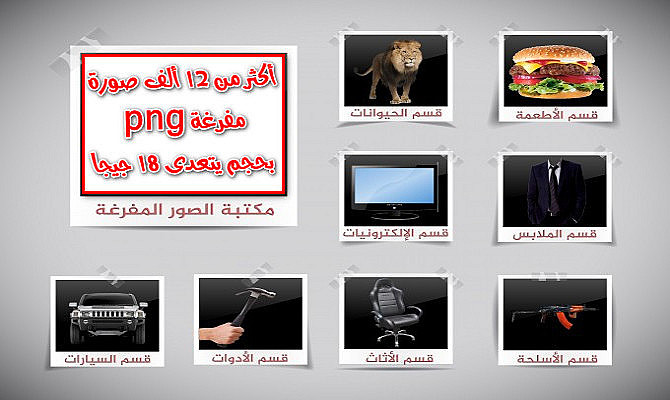 فإليكم يا أفاضل مكتبة مكونة من 20 قسم رئيسي وأكثر من 300 قسم فرعي بعدد صور أكثر من 12 ألف صورة بصيغة png