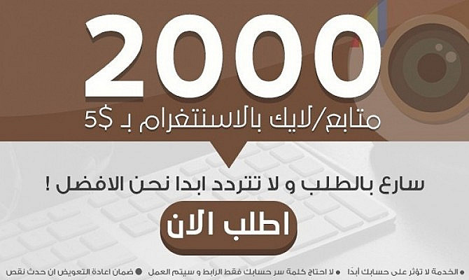 *إضافة 2000 متابع 100% حقيقي بدون استعمال برامج أو بوتات + 100 لايك (من كافة دول العالم)