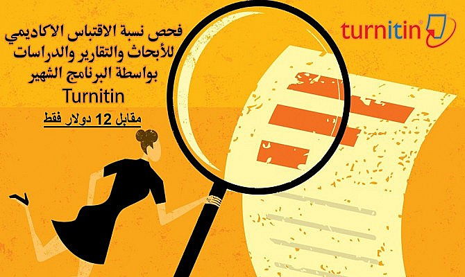نقدم لكم خدمة فحص الاقتباس الاكاديمي وذلك بواسطة برنامج Tutnitin الشهير،