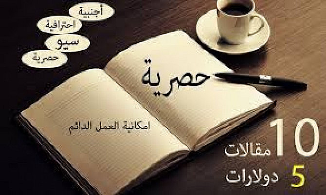 و في هذه الخدمه اقدم لك 10 مقالات في اي مجال تريد مقاله حصريا و احترفية جدا و باحسن سعر و كل مقالة تحنوي علي 600 كلمة يعني 10 مقالات بهم 6000 كلمة و بي 5 دولار فقط