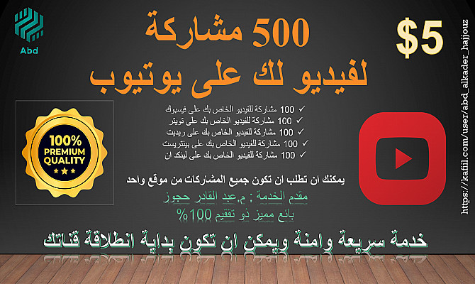 ملاحظة : - لا نقدم تقارير بلمشاركات التي قمنا بها للفيديو الخاص بك لانخفاض تكلفة الخدمة