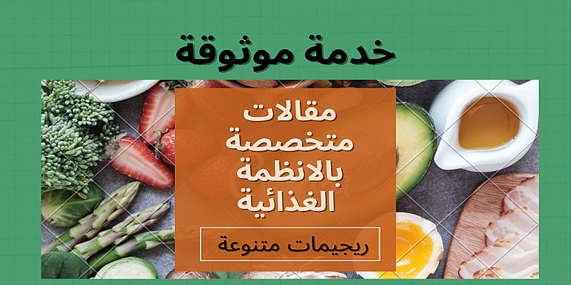 -كتابة مقالات باللغه العربية عن انظمة غذائية متعددة (ريجيمات متنوعة) موثقة المصدر العلمي