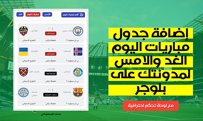 اضافة جدول مباريات اليوم ، الغد ، الامس الى مدونتك مع لوحة ت