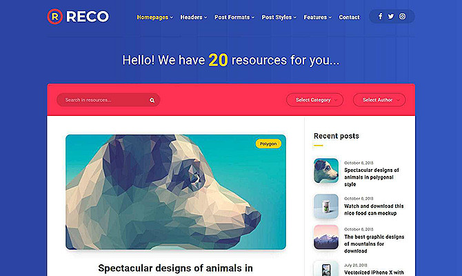 إحصل الآن على قالب RECO المميز بسرعته الفائقة وتصميمه الذي يجمع بين الأناقة والبساطة والمخصص للمدونات ومواقع التصميم