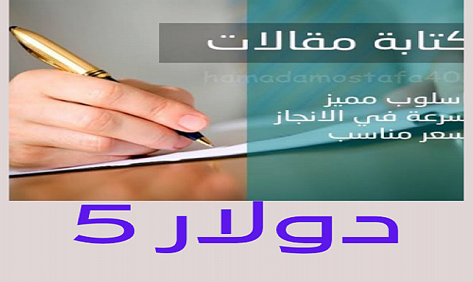 كتابه مقالاه حصريه فى جميع المجالات مقابل 5دولار فقط على ان لا تزيد عن 1000 كلمه ما عليك هو اختيار المجال الذى تريد كتابه مقاله عنه واللغه المقال واخيرا كل عام وانتم بخير بمناسبه حلول عيد الاضحى المبارك