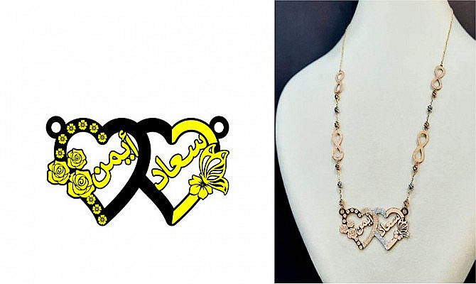 سأخطط لك أي اسم تريد تنفيذه على قطعة ذهب أو اكسسوارات