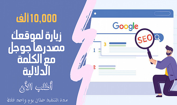 10,000 ألاف - زيارات لموقعك مصدرها جوجل مع الكلمة الدلالية - التسليم - بعد يوم من أنشاء الطلب ???