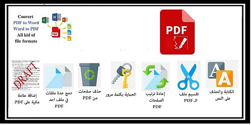 - تحويل 20 صفحة من ملفات pdf إلى صور والعكس وإمكانية دمج الملف
