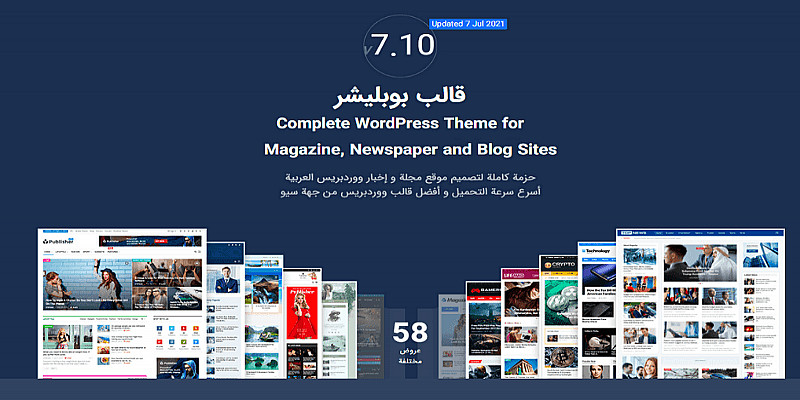 قالب ببليشر هو قالب احترافي مخصص للمدونات والمواقع الإخبارية والمجلات العاملة بنظام الووردبريس في مختلف