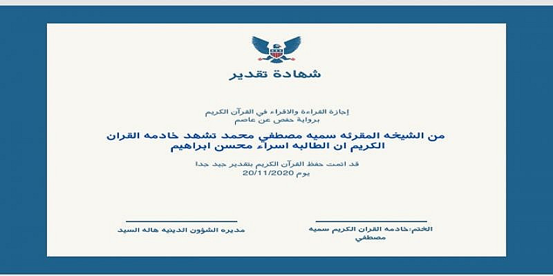 طلب العلم طلب الله ، وكلما كبر العلم كبر الإيمان". لقد جاهدنا أيضًا من قبل كطلاب ولكن بعون الله أصررنا على الاستمرار. اليوم ننقل لكم ما تعلمناه. إذا كان لديك نية حسنة في طلب العلم لإرضاء الله ولديك إرادة قوية ، فيمكنني مساعدتك. إسراء محسن معلمة القرآن الكريم وتفسير آيات القرآن الكريم وأحكام التجويد والعلوم الشرعية وامتلك مهارات سوف اعلمك القرآن الكريم وسوف احفظك القرآن الكريم وتفسيره بكل سهولة ويسر . وأخذت عدة شهادات في أحكام التجويد واجازة وسند في ختم القرآن الكريم ولدي الشغف في تدريس القرآن الكريم لطلابي