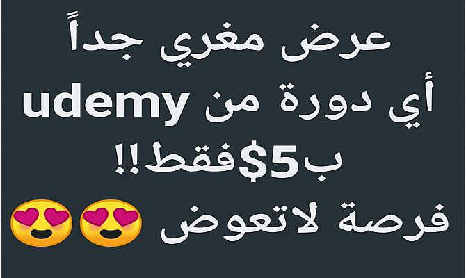 نعرض لكم عروض مغرية جداً كوبونات لدورات udemy بسعر 5$ فقط على الدورة الواحدة ويوجد عروض أخرى راجع الخدمة بشكل كامل .. أرجوا أن تفيدكم الدورات كما تريدون وأكثر ان شاء الله