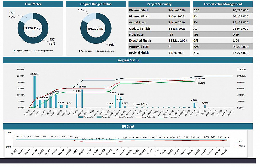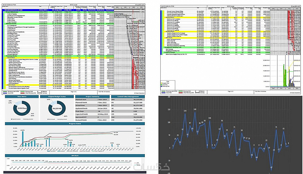 تقديم جداول زمنية للمشاريع الانشائية لكافة انشطة المشروع باستخدام برنامج بريمافيرا P6 مع تقديم داشبورد احترافي على برنامج Excel شامل جدول التدفقات النقدية للمشروع Cashflow كما موضح بالصور .. يتم تسليم البرنامج PDF و XER شامل جميع الانشطة و العلاقات بينها و كذلك هيكل تجزئة العمل WBS