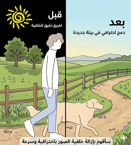 مرحبا في هده الخدمة سوف اقوم بالتعديل على صورتين بطريقة احترافية ودلك بإزالة الأشخاص او الأشياء او النصوص او العيوب لتكون الصورة بالجودة التي تريدها