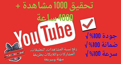 نقدم لكم في هذه الخدمة 1000 مشاهدة + 4000 ساعة في وقت وجيز، وضمانة💯 والجودة.