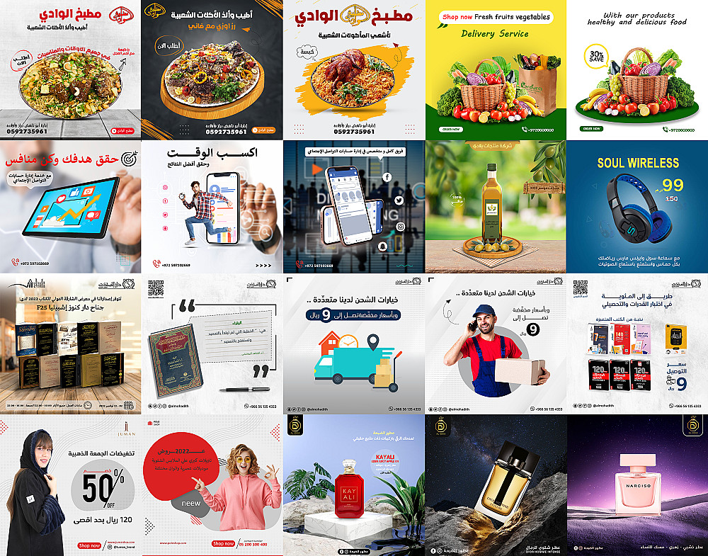 اقدم خدمة تصاميم السوشيال ميديا لجميع منصات التواصل الاجتماعي وبجميع المقاسات .