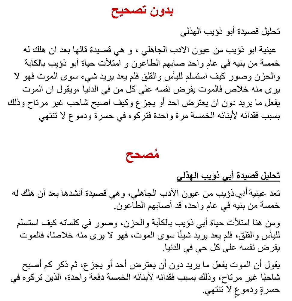 فعدم تنظيم النص وتنسيقه وكثرة الأخطاء الإملائية والنحوية تُفقد النص جودته، لذلك من المهم خلو النص من مثل هذه الأخطاء؛ حتى يكون نصك مثالي و كامل الجودة.