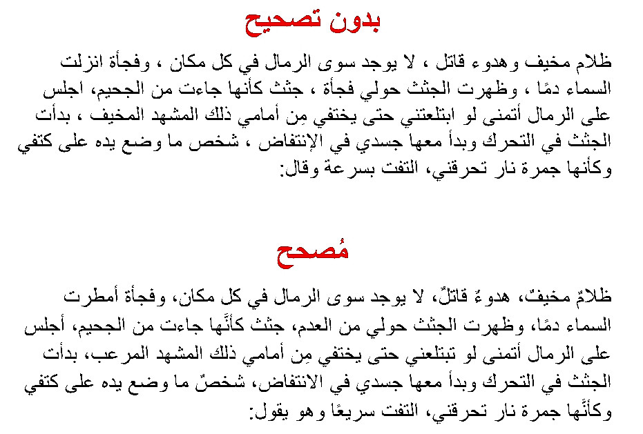التدقيق الإملائي والنحوي، وتنسيق النصوص.