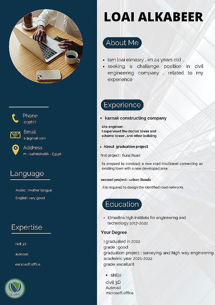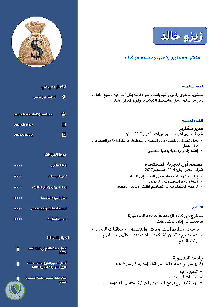 يمكننى انشاء تصميم لسيرة ذاتيه احترافية بشكل جدذاب ومنسق
