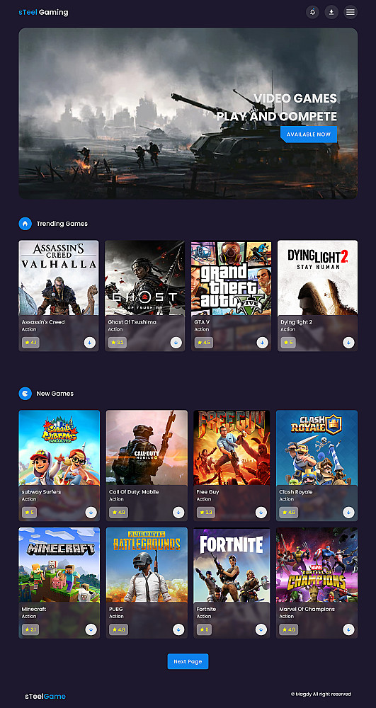 تحتوي الصفحة الرئيسية على معلومات عن الموقع وخدماته، بالإضافة إلى معاينة لبعض الألعاب الشيقة للإلهام. كما يوجد قسم للألعاب الجديدة، حيث يمكنك العثور على أحدث الألعاب التي تم إضافتها إلى الموقع.
