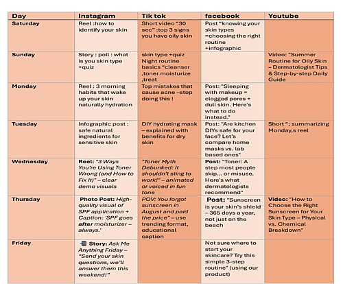 تصميم خطة نشر أسبوعية (Content Calendar)