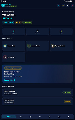 بناء تطبيق Flutter متكامل لإدارة الأنشطة الرياضية الجامعية