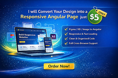 سأقوم بتحويل تصميمك إلى صفحة Angular متجاوبة واحترافية