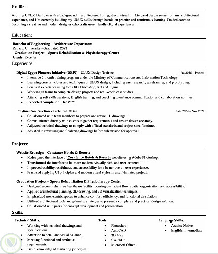 أنا رؤى السيد، مصممة تجربة المستخدم وواجهة المستخدم (UI/UX Designer) بخلفية أكاديمية في الهندسة المعمارية، وهو ما منحني قدرة مميزة على إدراك التفاصيل الدقي ....