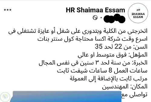 أنا شيماء، متخصصة في الموارد البشرية والدعم الإداري بخبرة 4 سنوات في التوظيف، تنسيق الأعمال، وخدمة العملاء. أساعد الشركات والأفراد على إنجاز مهامهم بكفاءة ....