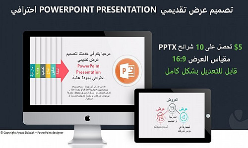 السلام عليكم ورحمة الله, أسعدَ اللهُ يومَكم بكُلِّ خيرٍ إخواننا الكرام ؛ يسعدني وشرفني تواجدكم في ملفي , ما أحب عمله وأتقنه هو: (تصميم العروض التقديمية ب ....
