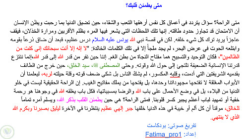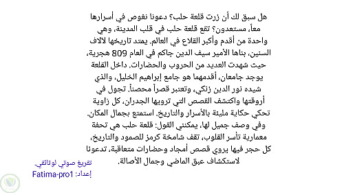 أهلاً بكم.. أنا فاطمة، خبيرة في معالجة وتحويل المحتوى (الصوتي، المرئي، والنصي) إلى ملفات منظمة وعالية الجودة، مع ضمان الاحترافية في التنسيق ا خدماتي الاح ....