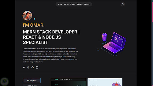 مرحبًا! أنا عمر، مطوّر واجهات ويب محترف بخبرة واسعة في بناء مواقع وتطبيقات تفاعلية باستخدام React، Next.js، وTailwind CSS. أعمل على تصميم واجهات عصرية، سري ....
